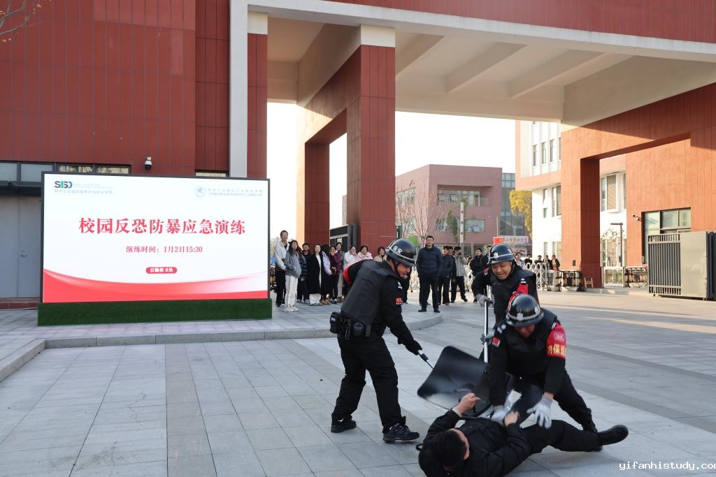 为提高师生应对恐怖袭击和暴力事件的能力,1月2日下午,一场别开生面的师生反恐防暴应急演练在学校东门开展。学校副校长杜梓平,两校部分师生及安保公司和物业相关人员参加此次演练。